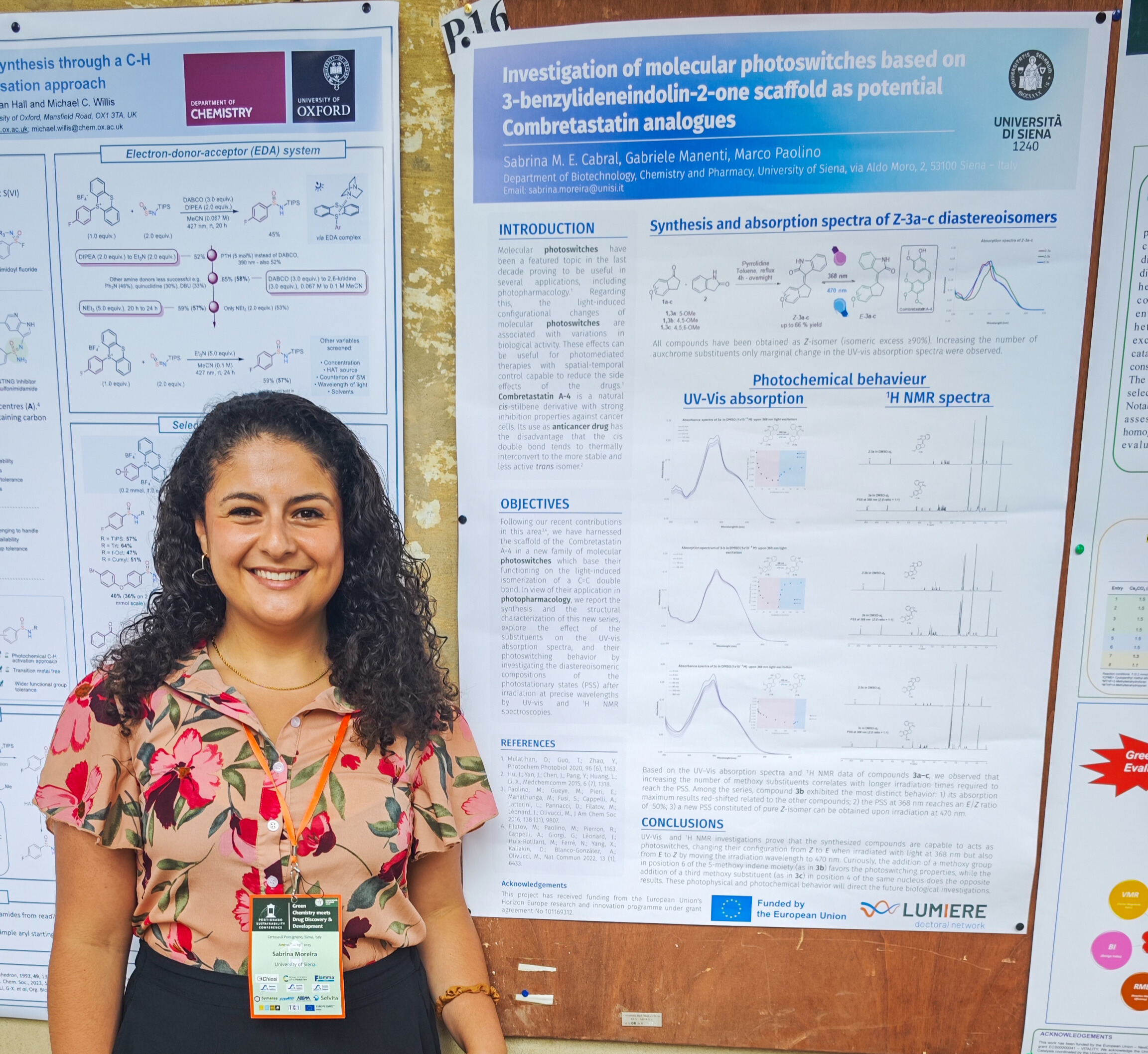 As part of the 10th European Workshop “Green Chemistry meets Drug Discovery & Development” in Siena, Italy, from February 16 to 19, LUMIERE doctoral student Sabrina Moreira Eyer Cabral presented a poster entitled “Investigation of molecular photoswitches based on a 3-benzylideneinolin-2-one scaffold as potential combretastatin analogues.”
